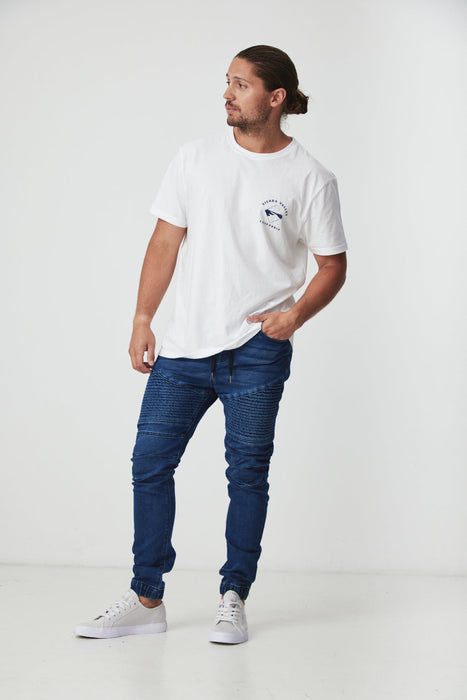 The Sid is our slim tapered jean, designed to sit just on your shoe and to give a clean silhouette through the leg. Great for those guys who still want a slim fit but need a bit more room up top! Featuring a light modern wash. Made in our comfort stretch denim fabric, to give you the look of vintage denim with the added comfort of stretch denim.